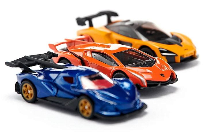Набор: гоночные машинки, дорожный знак, камера SIKU