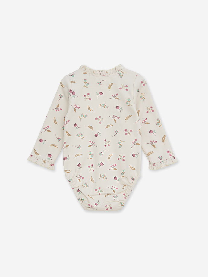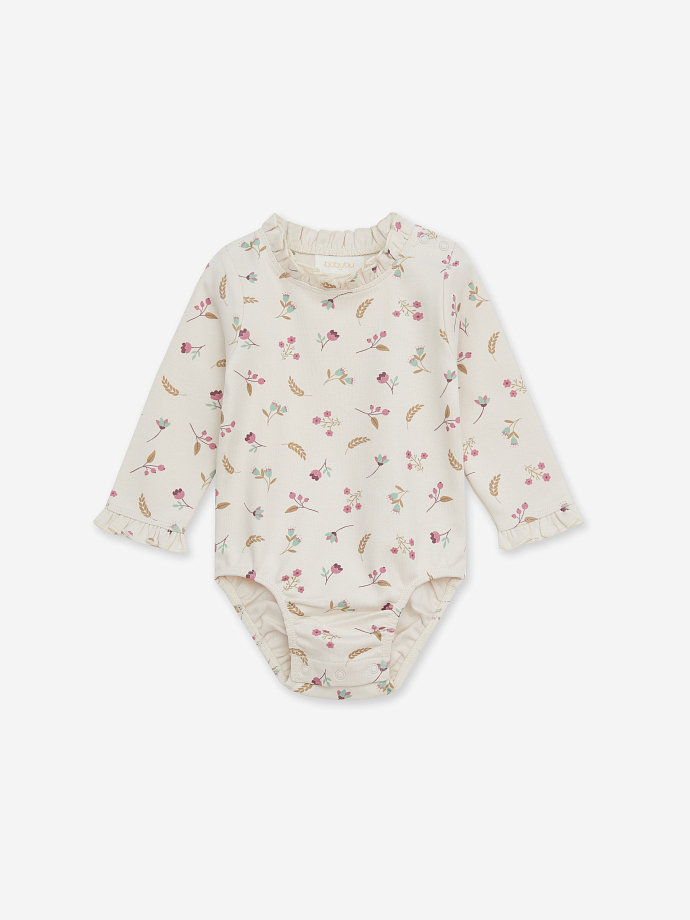 Уютное боди с цветочным принтом и ажурными деталями не только выглядит прекрасно, но и обеспечивает максимальный комфорт для активных детей.