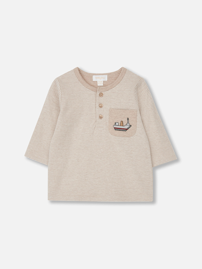Накладной карман усилен декоративной аппликацией и держит мелкие вещи; прямой крой и длинные рукава не ограничивают движений ребёнка во время активных игр. Оптимальная плотность ткани делает лонгслив универсальным: носите его как самостоятельный слой в помещении и на прогулке или под толстовкой в прохладную погоду.