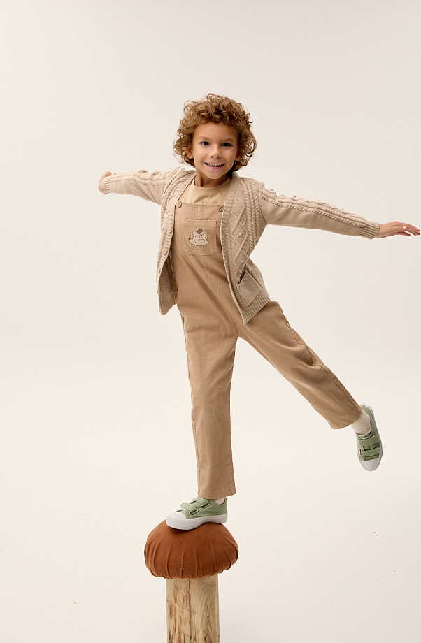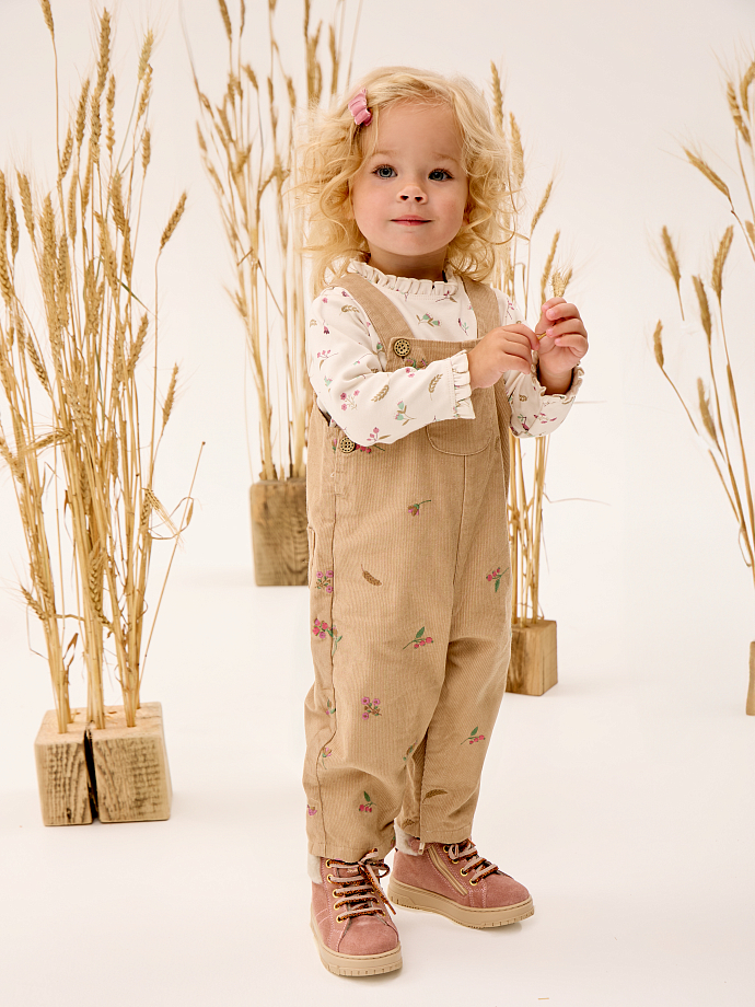 Детский комбинезон на лямках из 100% органического хлопка — идеальный выбор для маленьких модниц! Изготовленный из мягкого и приятного на ощупь вельвета, он обеспечит комфорт и свободу движений вашему ребенку.