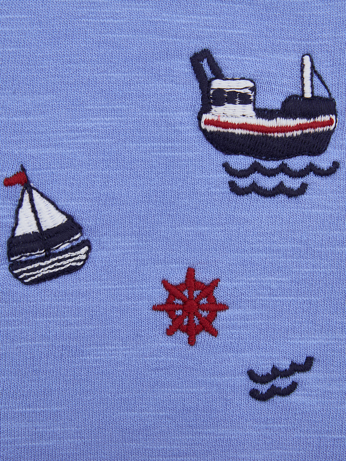 Спортивный костюм в голубом цвете с вышивкой в морской тематике идеально подойдет для активных игр и путешествий!