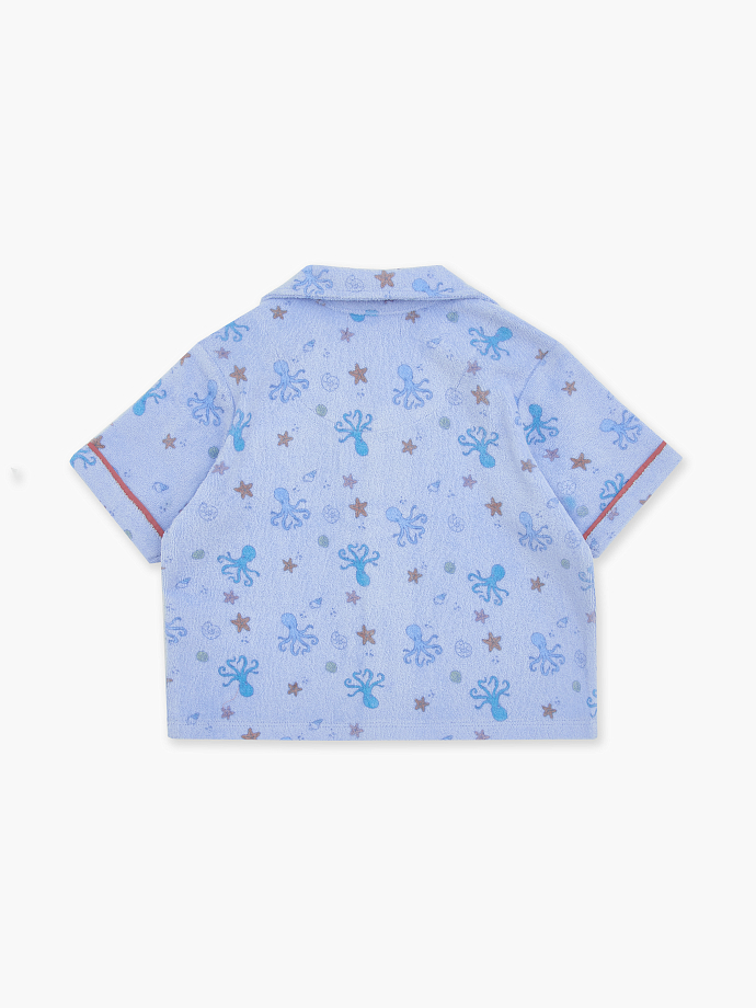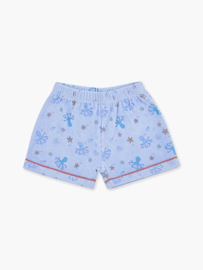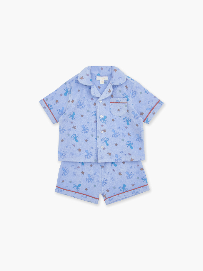 Детский махровый комплект из шорт и рубашки в голубом цвете с морским принтом.