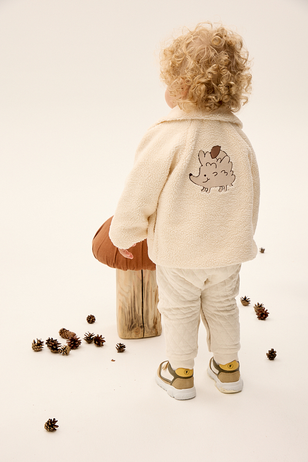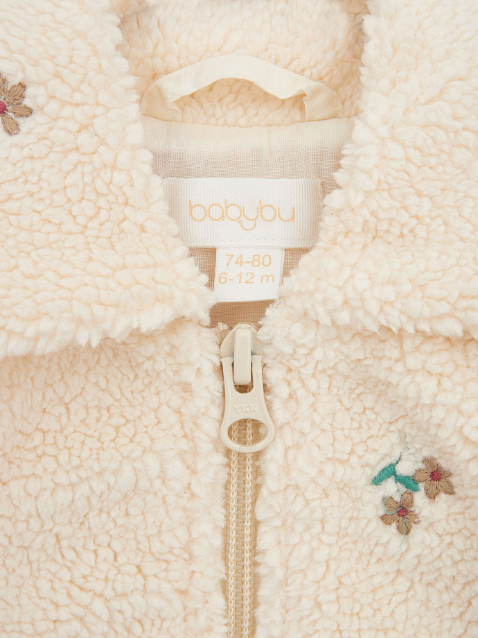 Стильная куртка из мягкого эко-ширлинга с вышивкой идеально подходит для прохладной погоды. Нежный молочный оттенок в сочетании с контрастной цветочной вышивкой придает изделию особый шарм.