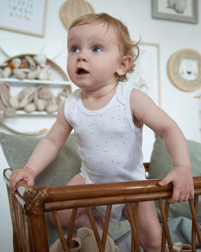 Набор из двух боди без рукавов для малышей. Хлопковый материал мягкий и дышащий, подходит для повседневной носки. Удобные застёжки облегчают переодевание ребёнка.